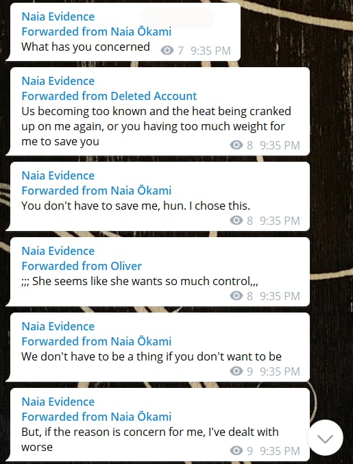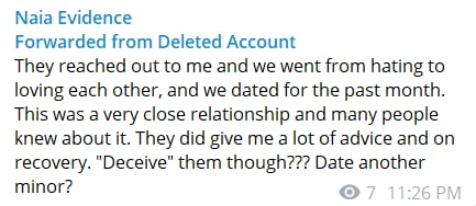 Though some offered her sympathy, many remained unconvinced, citing the lack of transparency and accountability. Throughout all of this, BeccaTheShep—named as part of the polyamorous relationship—remains an obscure figure with no verifiable public identity or known statements. While Naia has continued to participate in online communities, her reputation has been permanently damaged, and she is no longer regarded as a trustworthy or representative voice by much of the community. Since then, independent researchers and community members have collected extensive evidence proving that Naia intentionally sabotaged the effort to expose Sappho, willingly entered a relationship with her, and actively attempted to cover up her involvement after the fact. This evidence includes archived messages, deleted posts, and corroborating witness accounts that confirm her actions were deliberate and not the result of misunderstanding or failed intentions.